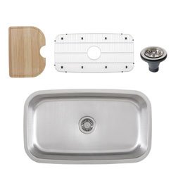S112 Undermount 16-Gauge Stainless Steel Single Bowl Kitchen Sink This stainless steel sink will bring a simple elegance into any kitchen.Its large and medium size rounded bowls are designed to make working in your kitchen easy and efficient. Every Ticor sink is manufactured with an excellent sound dampening system that absorbs and reduces the noisemade by a garbage disposal, running water, and any vibration caused fromdropping dishes or silverware in the sink. Coupled with a heavy-duty undercoating and scratch-resistant satin-brushed finish, you'll find you are getting a beautiful sinkyou can be proud to put in your kitchen, along with peace of mind that you can depend on your Ticor sink for years to come.Technical SpecsBrand: TicorModel: S112Installation Type: UndermountExterior Dimensions: 31-1/2" x 18-1/2" x 10"Interior Dimensions: 29-1/2" x 16-1/4" x 10"Drain Opening: 3-1/2" StandardMaterial: High Quality 18/10 Chromium/Nickel Stainless SteelSink Gauge: 16-gaugeFinish: Brushed Bowl/Polished RimMinimum Sink Base Cabinet Required: 33"Features:Heavy Duty Sound Guard Coating and PaddingScratch-resistant Top Mirror FinishIncluded With Sink As Free Items:Template for Sink CutoutMounting and Installation Brackets1 Rinse Sink Grids (Polished 18/10 Stainless Steel Wire Bottom Grid with Opening for Sink Strainer)